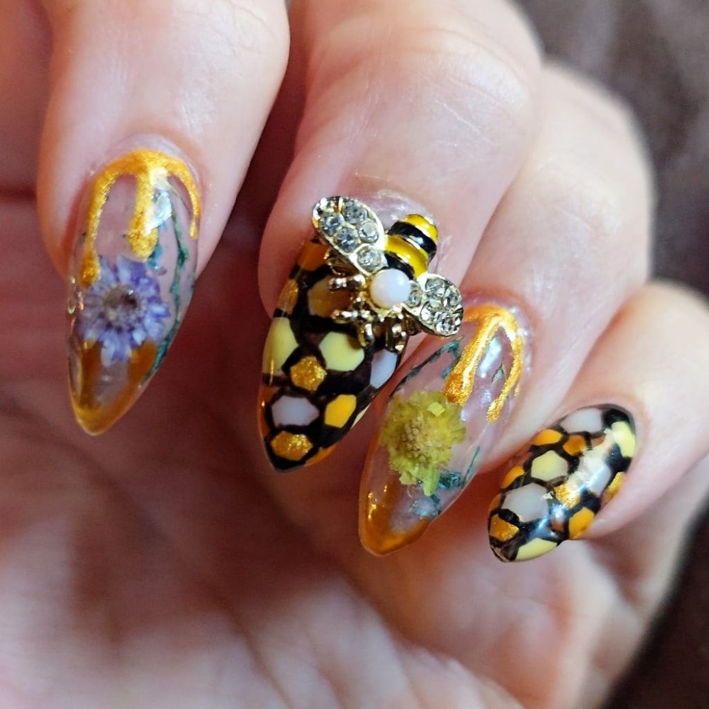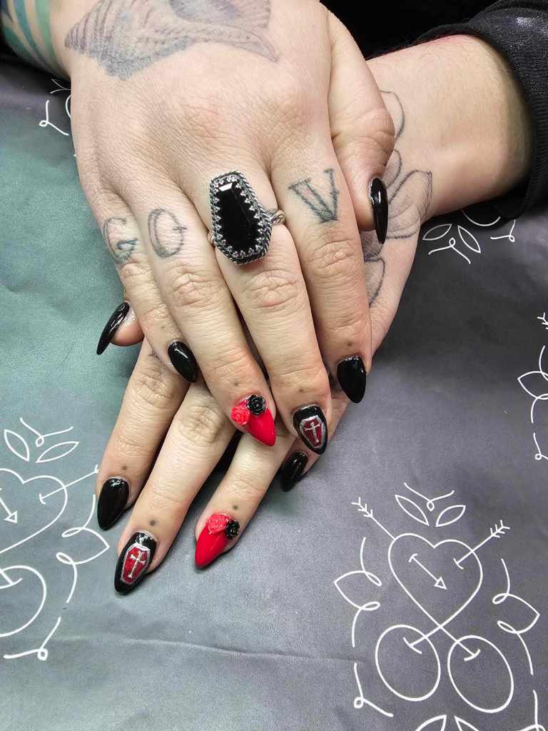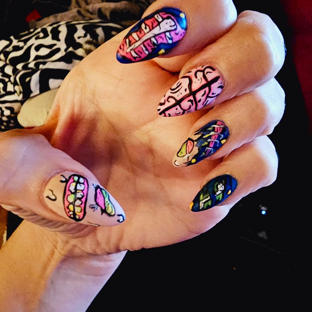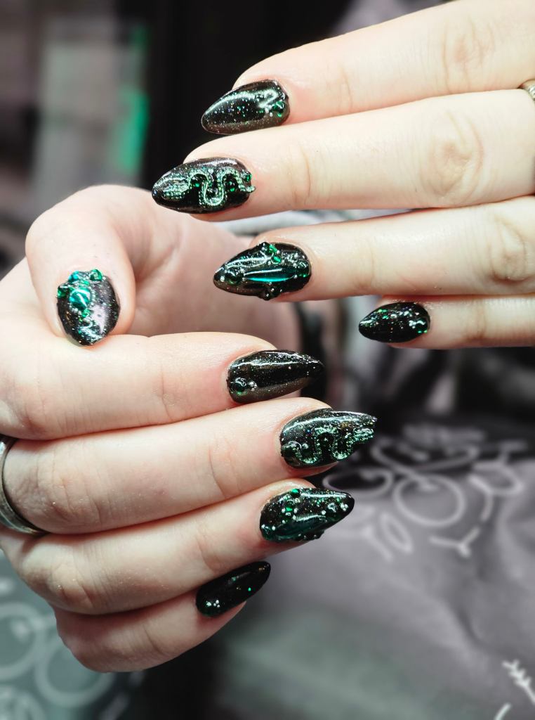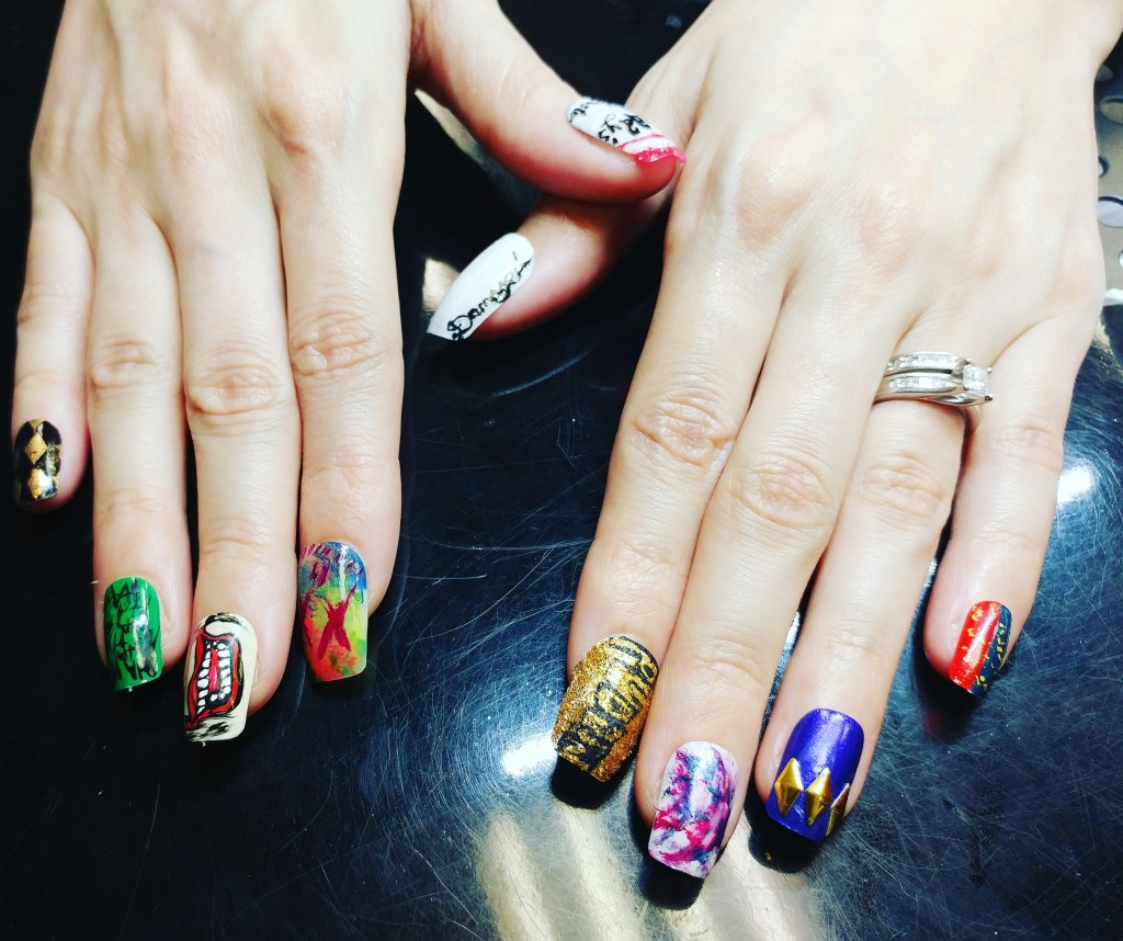 High end Art Designs: full sets with every nail painted, portraits, hard design work, inlaid pieces, many gems, XL lengths or 3D sculpted art.