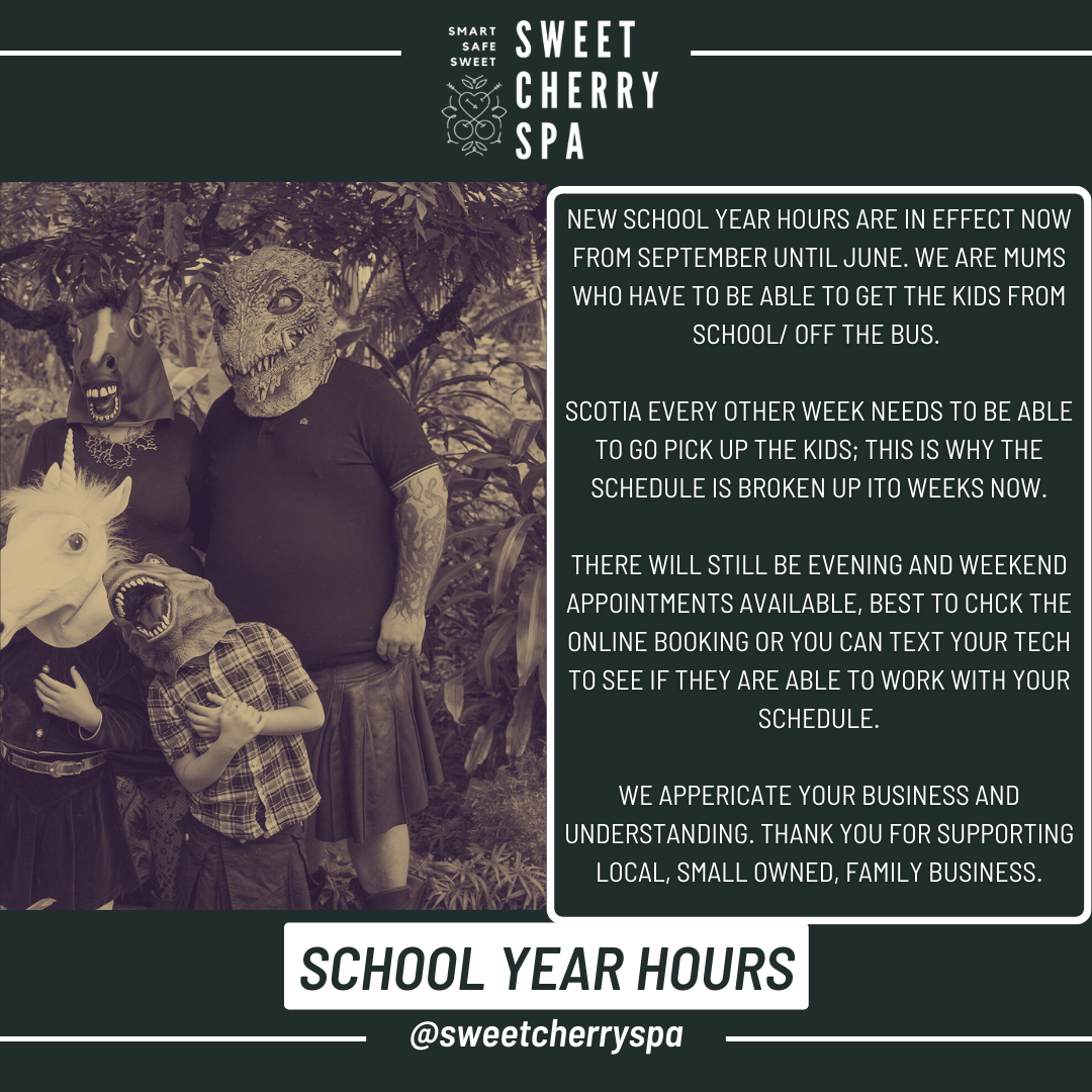 New school year hours are in effect now from September until June. We are mums who have to be able to get the kids from school/ off the bus.