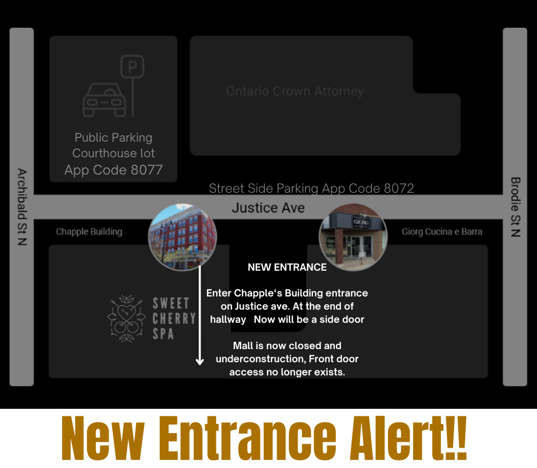 Please now ONLY come through the Justice Ave Chapple’s Building Doors ( not the park side ones) my door is now located in the hallway as of Monday June 23rd.